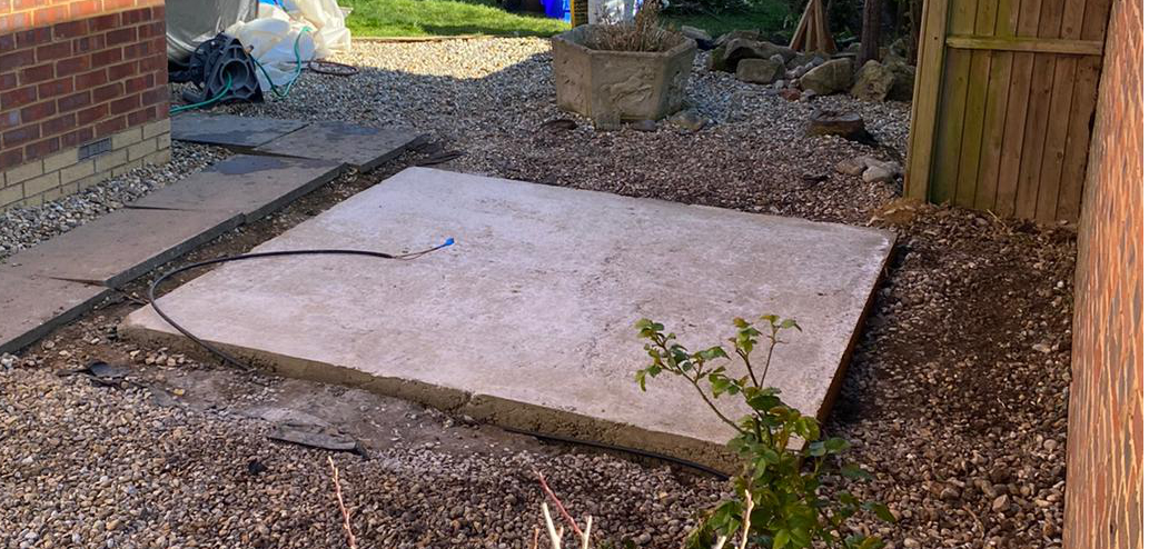 We recommend a concrete pad that is at least 10cm thick. We also recommend the concrete to be sloped at 1.5cm per 3.5m, this ensures water runs off the pad and prevents pooling.