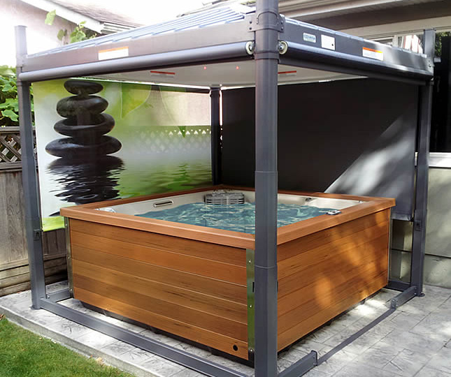 The Covana oasis can be retofitted to any hot tub that fits within the frame of the cover but there is likely to be an additional charge for the drain, move and re-installation of the hot tub under the Covana cover.